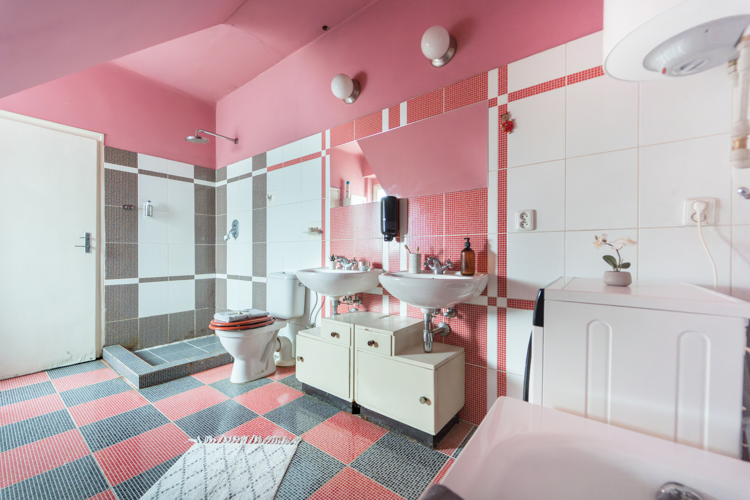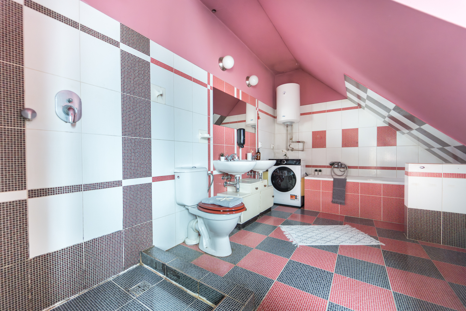 V tomto patře je pak koupelna s vanou i sprchovým koutem a toaletou.
