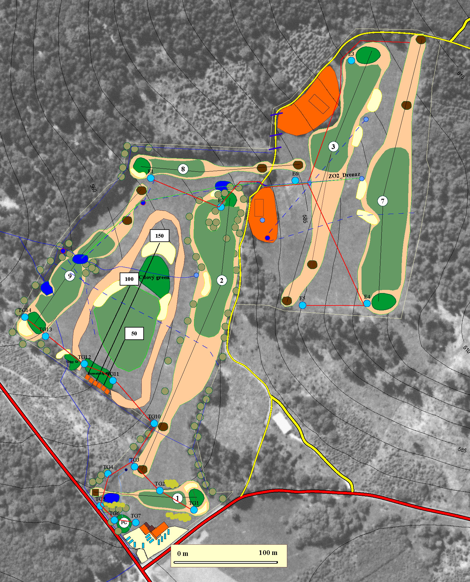 Samotný rodinný dům je napojen na vodu z vrtu, který je umístěn pár metrů od domu, kdy hloubka vrtu je 21m a voda je v 10 metrech. Na stejný vrt je napojena i vedlejší dřevěná stavba, která dříve sloužila jako zázemí pro golfové hřiště, které na pozemcích existovalo a bylo součástí České golfové federace. Jak golfové hřiště tehdy vypadalo přikládám ve fotografiích.